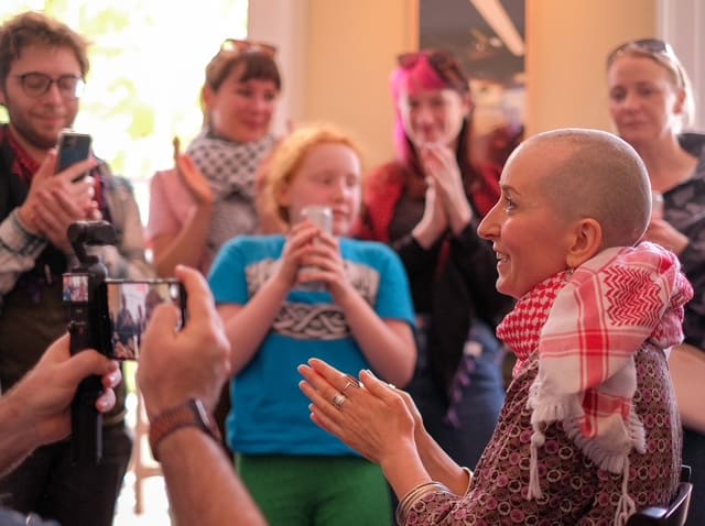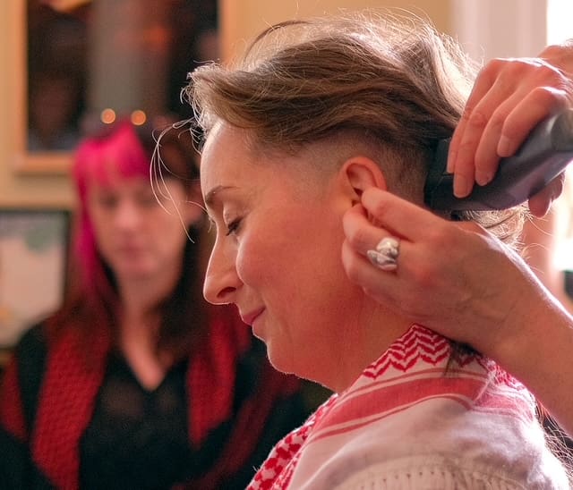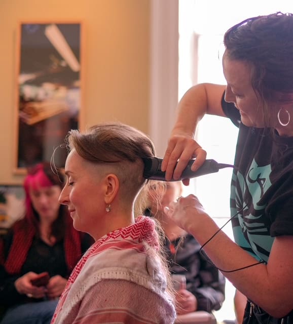 A series of photos I took in May of this year, when the local visual artist and activist known as Welly Boot (real name Helen) decided to do a fund raiser for Palestine by having her head shaved, in public, at the Quay Co-Op, Cork. Helen had recently been diagnosed with cancer. Rather than have her hair fall out, as a result of the chemotherapy, Helen decided to go with the look, in advance and raise some money for Palestine in the process.